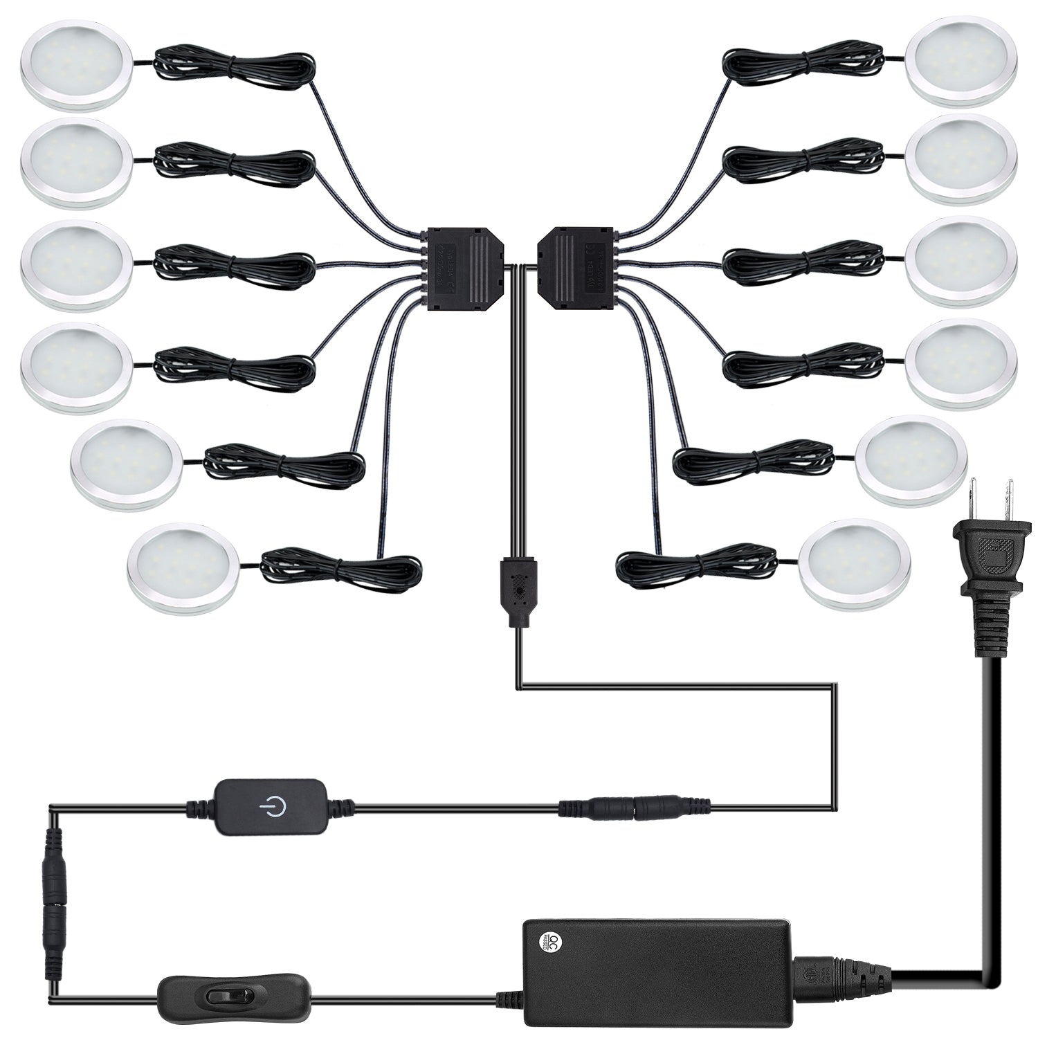 Aktualisierte LED-Leuchten für die Küche, 12-teiliges Touch-Dim-Schrankbeleuchtungsset, das schwarze Kabeldesign passt gut als Einbauleuchten für die Küche, Waffenschrankbeleuchtung, Küchen- und Schrankbeleuchtung