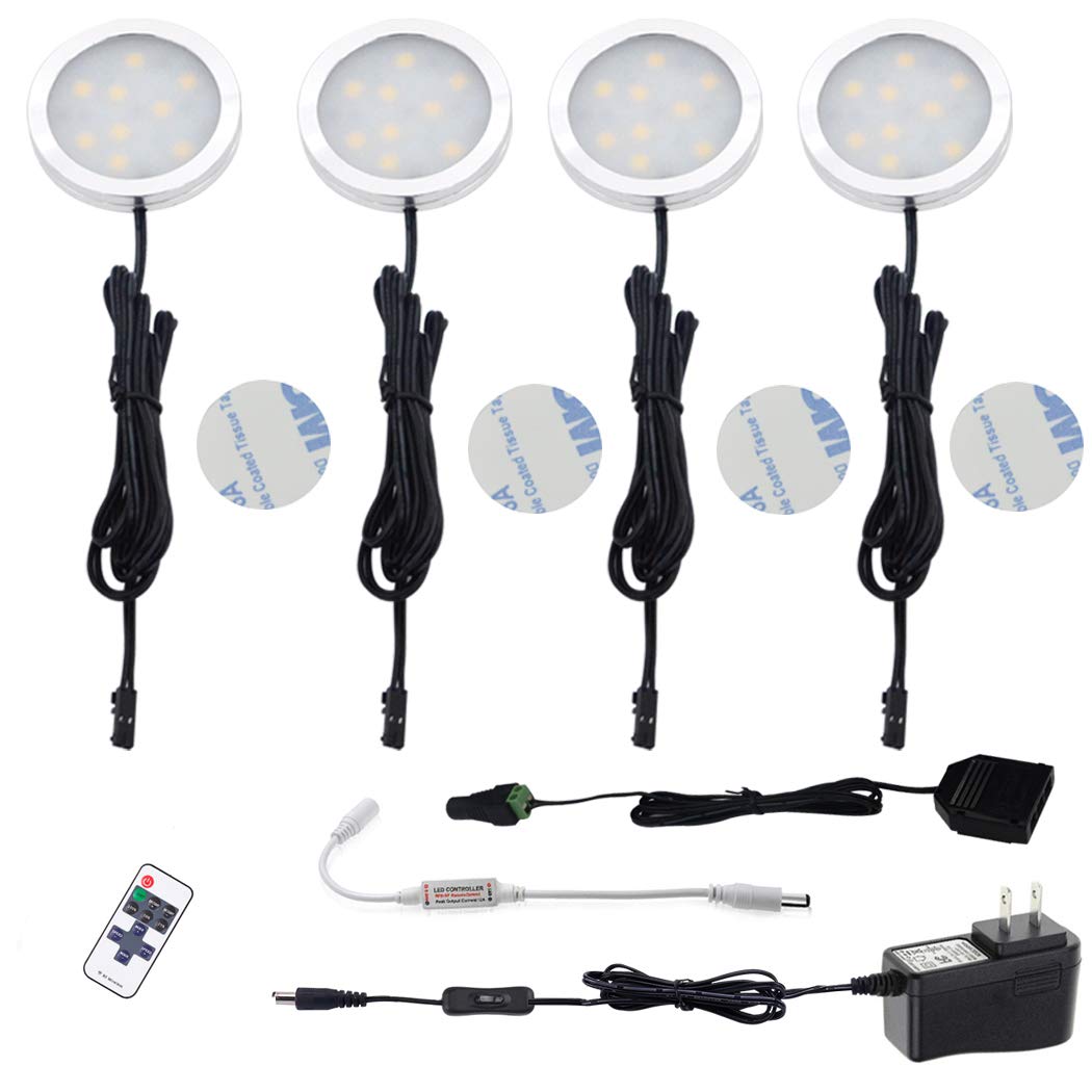 LED-Puck-Licht (X4): 4 runde LED-Schrankleuchten mit 60 Zoll Kabel