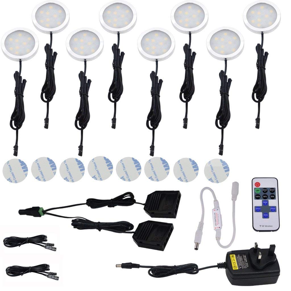 AIBOO Wireless 12V LED Under Cabinet Lighting Dimmable with RF Remote Controller, LED Puck Lights, for Kitchen Closet Counter Lighting